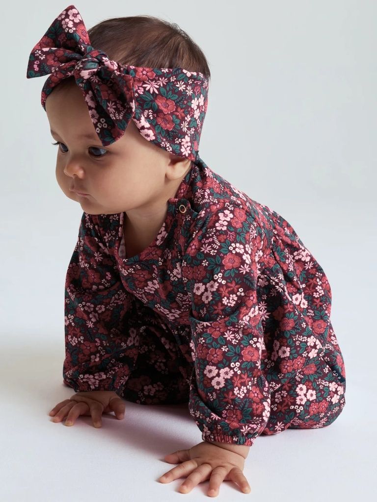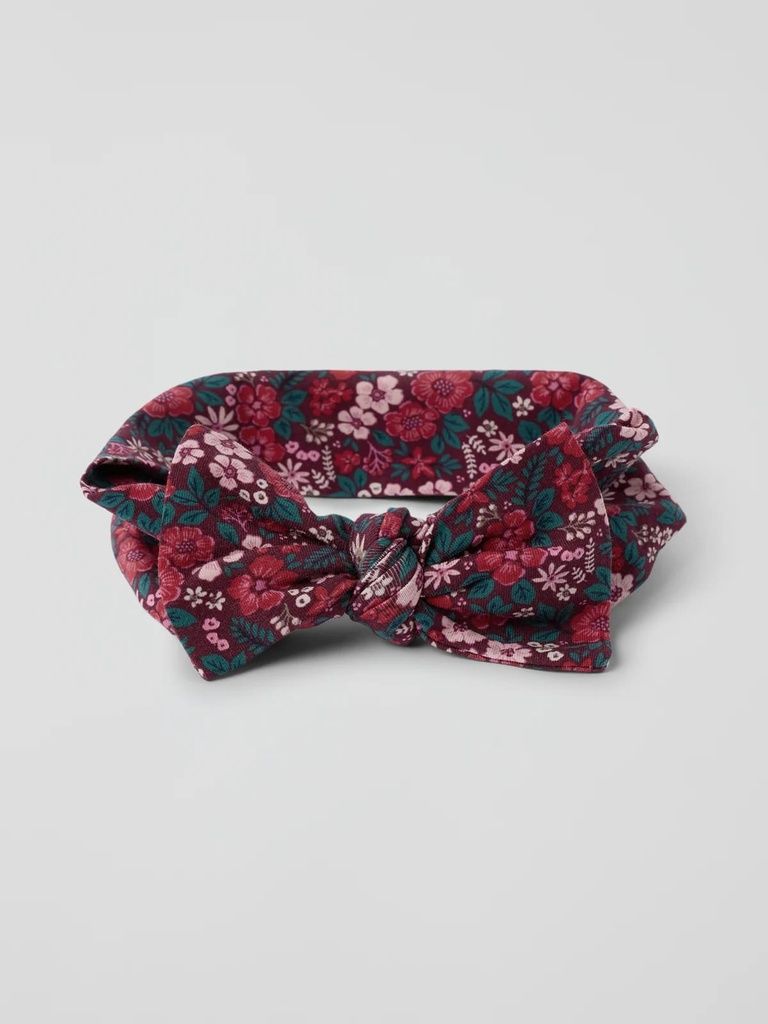 Dieses elastische Haarband aus weichem Baumwolltrikot ist das perfekte Accessoire für kleine Blumenkinder. Das Band ist rundum mit einem zarten Blumenmuster bedruckt und mit einer süssen Schleife geschmückt - ideal, um jedes Outfit mit einem Hauch von Verspieltheit zu ergänzen.