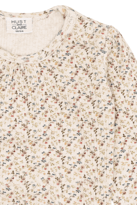 Ein schöner Body von Hust & Claire mit blumigem Allover-Print in harmonischen Farben. Die feine Rippstruktur gibt dem Body eine besondere Optik und macht ihn angenehm dehnbar.