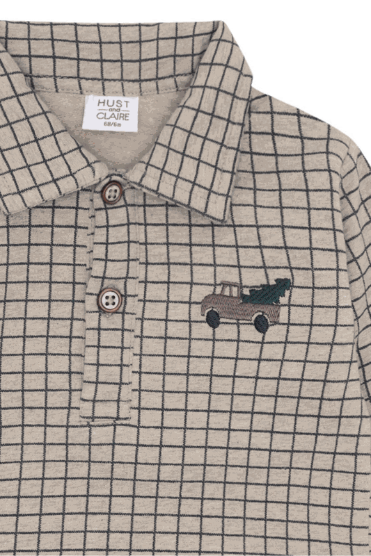 Dieses karierte Langarmshirt für Babyjungen von HUST & CLAIRE vereint zeitloses Design mit höchstem Tragekomfort. Hergestellt aus 95 % GOTS-zertifizierter Bio-Baumwolle und 5 % Elastan, ist es besonders weich, hautfreundlich und nachhaltig.