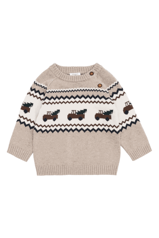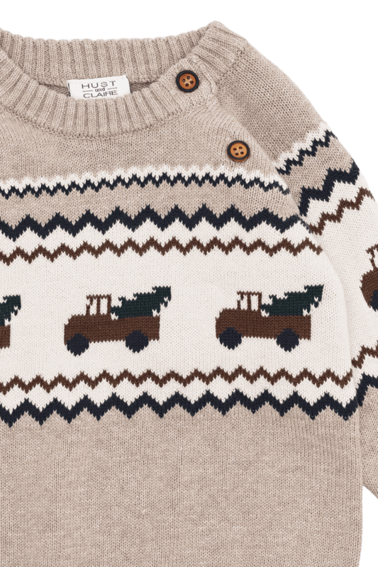 Dieser Baby-Strickpullover von HUST & CLAIRE überzeugt mit 100 % GOTS-zertifizierter Bio-Baumwolle, die besonders weich und hautfreundlich ist - perfekt für empfindliche Babyhaut.