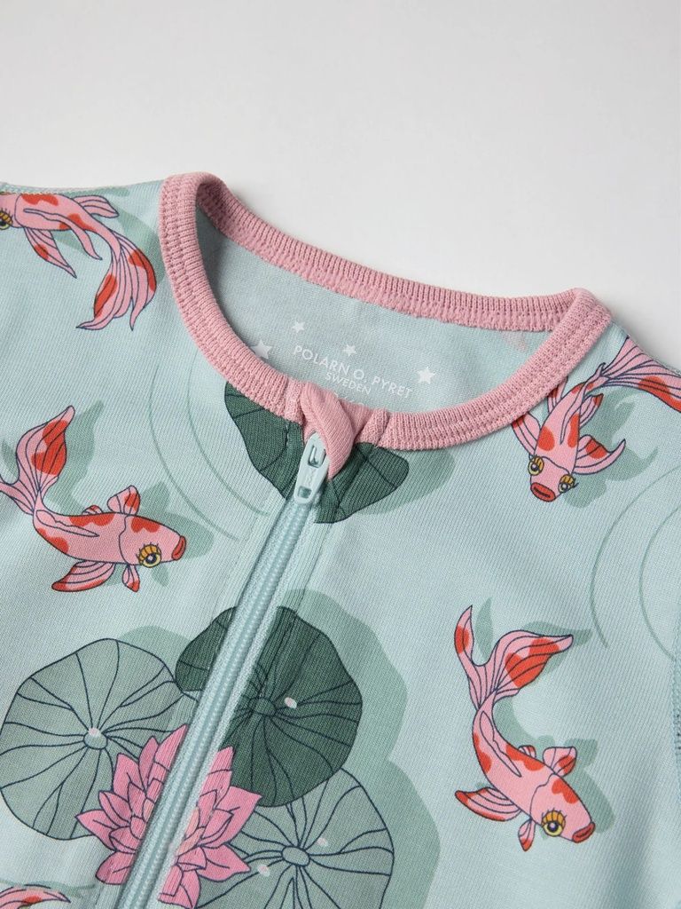 Der Overall ist durchgehend mit einem frischen Meeresmotiv bedruckt, das für eine fröhliche Stimmung sorgt. Besonders liebevoll verarbeitet: die extra weichen Nähte, die sich sanft an die empfindliche Babyhaut anschmiegen, sowie der praktische YKK-Reissverschluss, der vom Hals bis zum Beinabschluss reicht und so das An- und Ausziehen erleichtert. Ein Kinnschutz sorgt für zusätzliche Sicherheit und Komfort.
