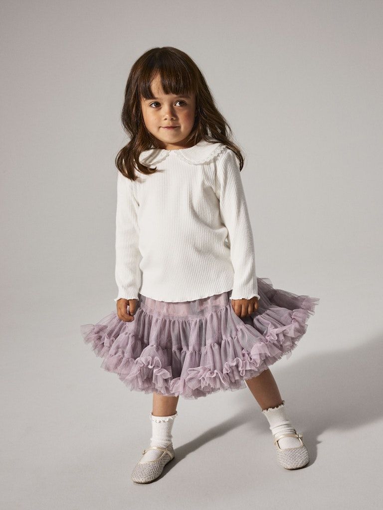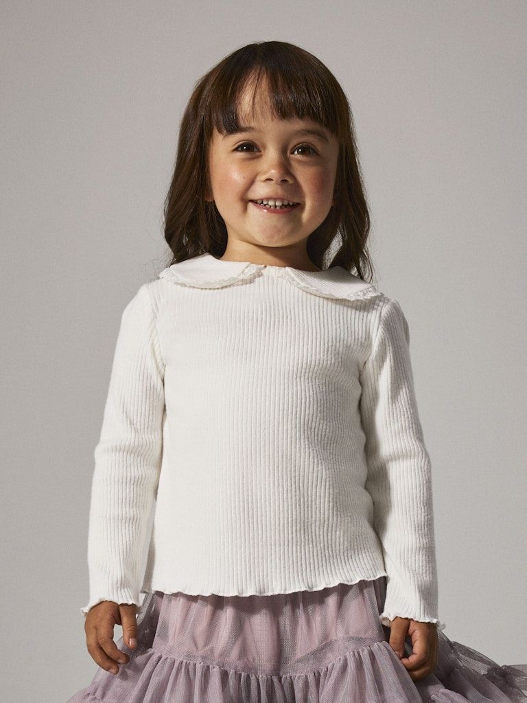 Aktualisieren Sie die Garderobe Ihres Kindes mit diesem modischen Oberteil aus weichem Rippstrick, das sich perfekt für den Alltag und besondere Anlässe eignet. Der fein gerippte Stoff bietet eine angenehme Elastizität und sorgt für einen zeitlosen, eleganten Look, der sich vielseitig kombinieren lässt - von Jeans bis Rock.