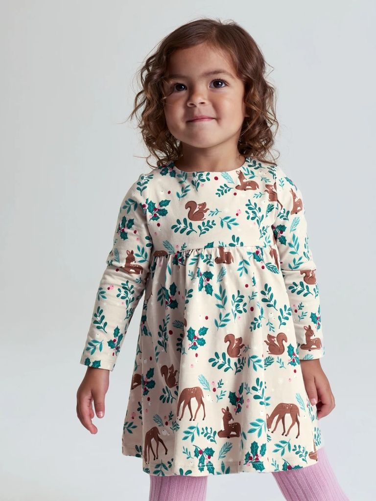 Dieses klassische Drehkleid ist ein absolutes Must-have für die Kindergarderobe. Gefertigt aus weichem Bio-Baumwolltrikot, besticht es durch ein extra weit geschnittenes Rockteil, das beim Drehen besonders schön schwingt.