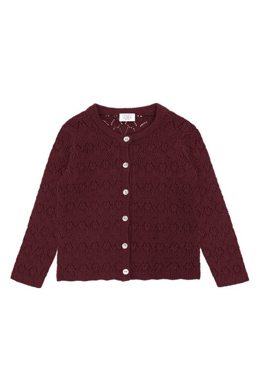 Diese Strickjacke von HUST & CLAIRE ist aus 100 % Bio-Baumwolle gefertigt und bietet sanften Tragekomfort für empfindliche Kinderhaut. Das leichte, luftige Lochmuster sorgt für ein angenehmes Hautgefühl und eine natürliche Belüftung.