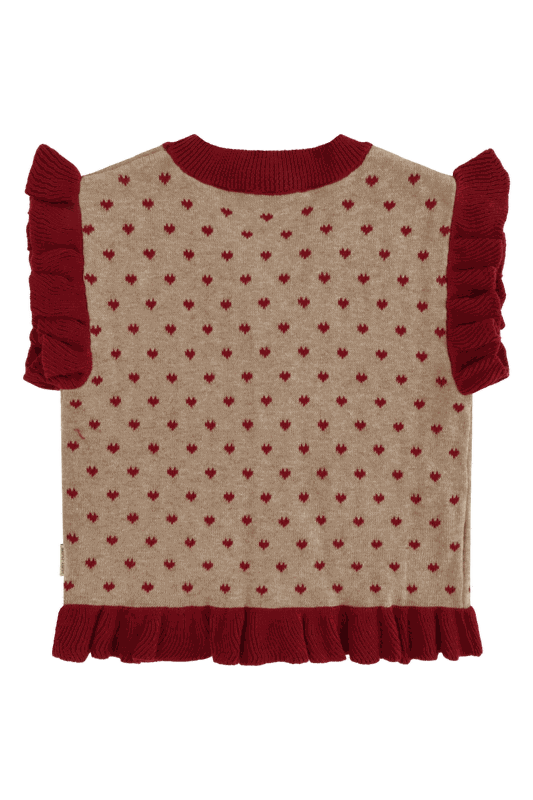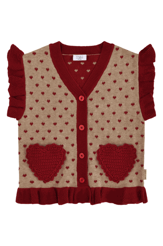 Das herzige Muster verleiht der Weste einen verspielten Look, der perfekt zu Alltag und festlichen Anlässen passt. Bitte beachten Sie, dass die Weste kleiner ausfällt - ideal für eine knackige Passform oder zum Drüberziehen über langärmelige Oberteile.