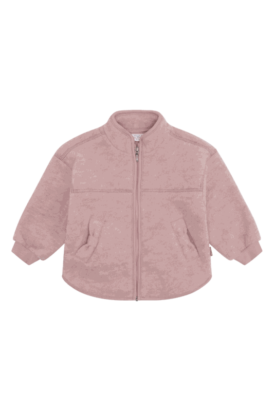Diese süsse Fleecejacke von HUST & CLAIRE aus 100 % Bio-Merinowolle ist der perfekte Begleiter für die Übergangs- und Winterzeit. Der hohe Kragen schützt sanft vor Wind und Kälte, während die zwei Hüfttaschen mit niedlichem Schleifendesign kleine Hände wärmen oder Platz für kleine Schätze bieten.