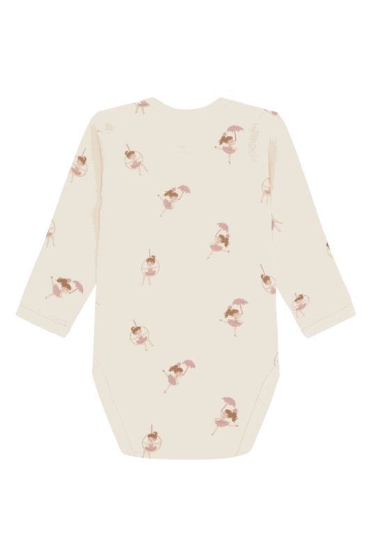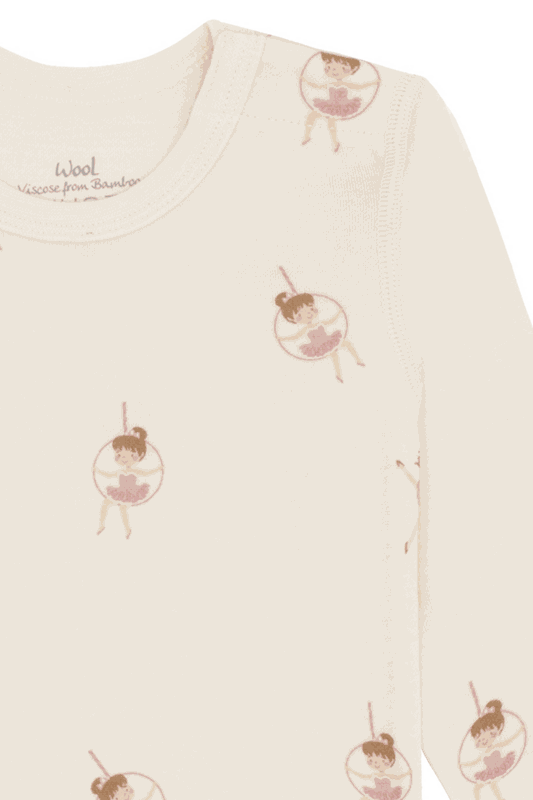 Unser langärmeliger Bodysuit kombiniert weiche, dehnbare Wolle aussen mit angenehmer Bambus-Viskose innen - perfekt für zarte Kinderhaut. Das niedliche Motiv sorgt für spielerischen Charme, während Druckknöpfe an der linken Schulter und im Schritt das An- und Ausziehen erleichtern.
